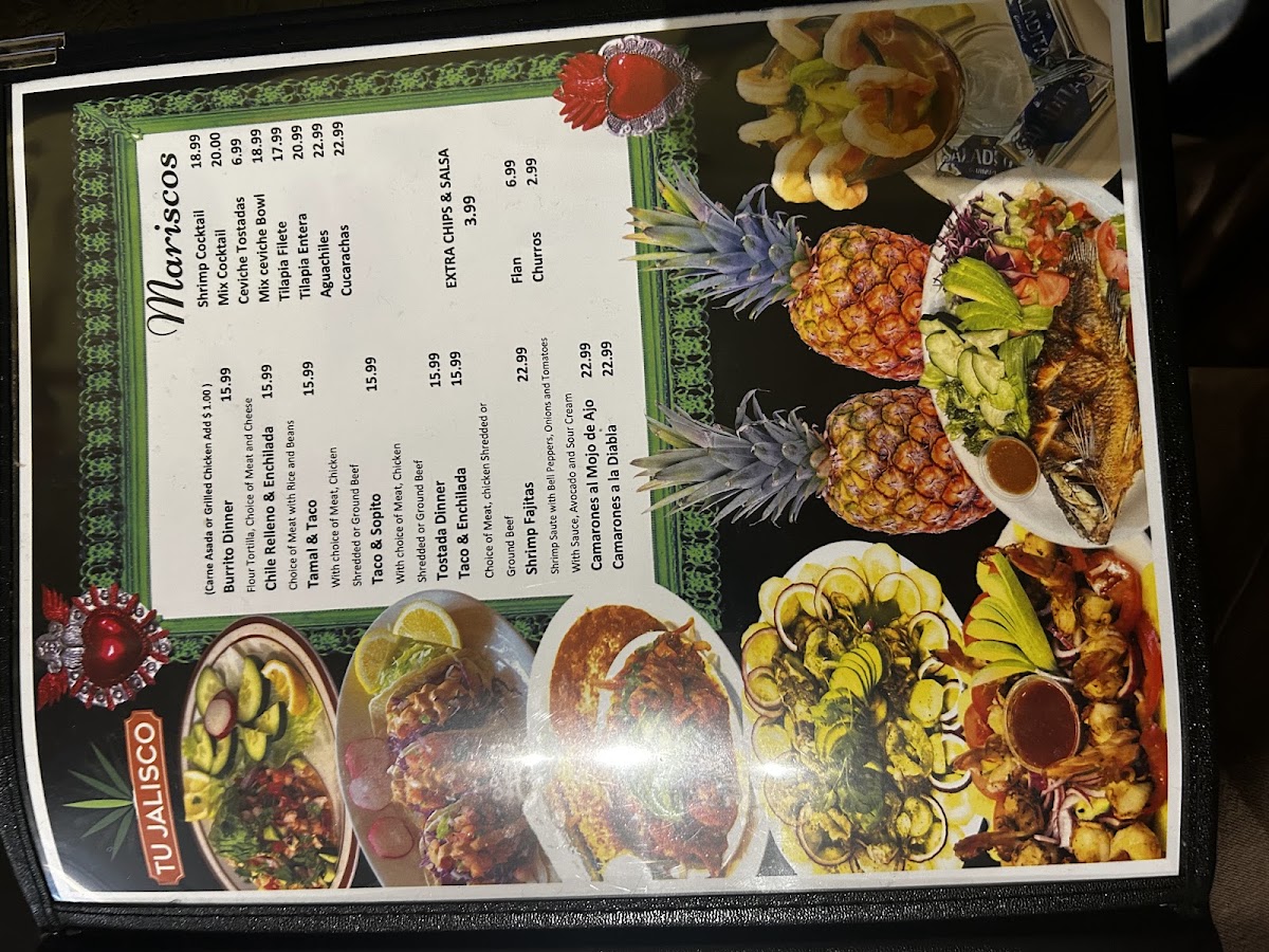 Grilled Fish, or Shrimp, served with Lettuce, cheese, Tomatoe Sauce, Parmesan Cheese and Pico de Gallo
