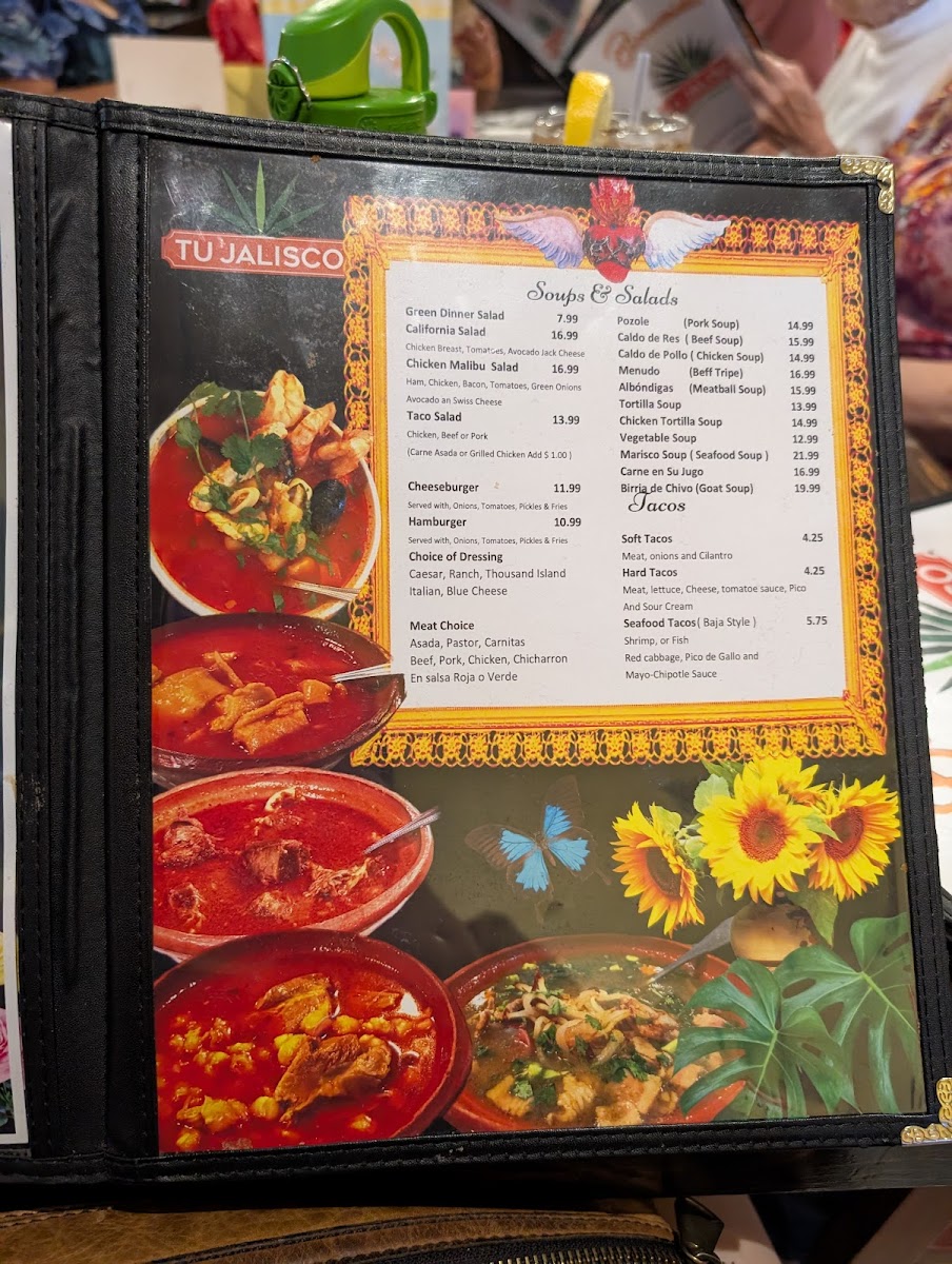 Beef and Bacon Soup, in a Green Sauce, served with Grilled Onions, cilantro and Jalapeño Peppers
