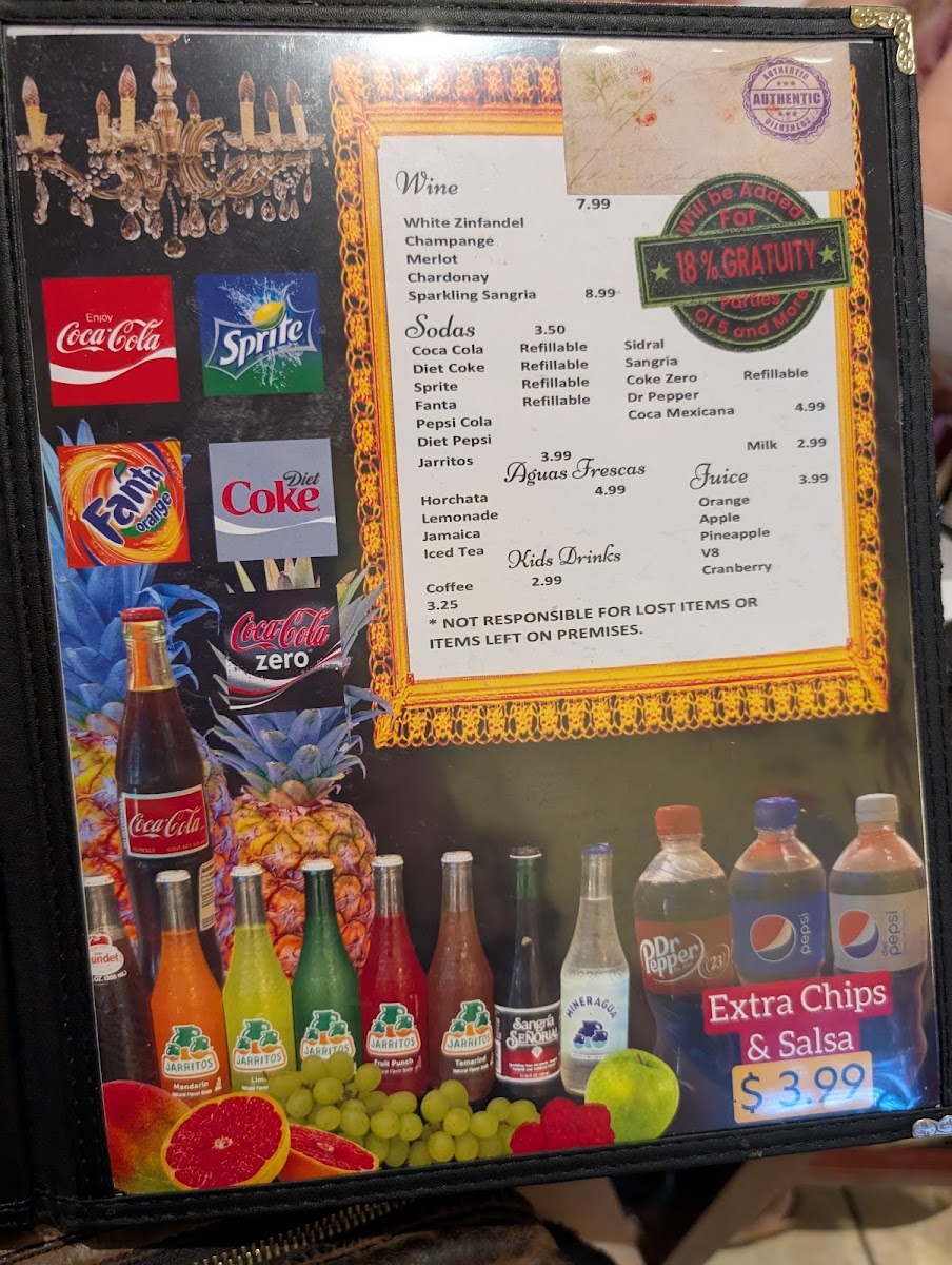 Selection of sodas including traditional Sidral Mundet, Coca-Cola varieties, Pepsi, Sprite, Sangria, and diet options.