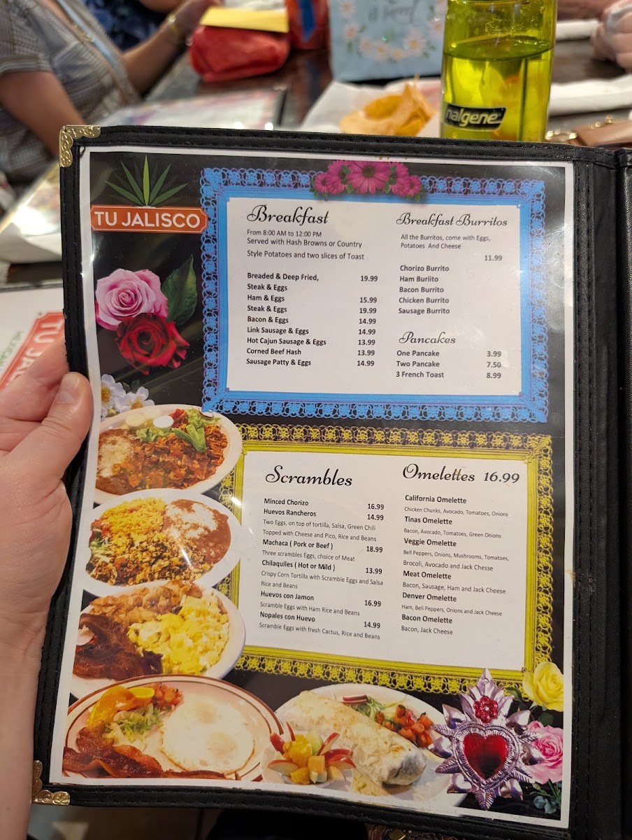 Three scrambled eggs with choice of linguica, pork or hamburger & salsa mexicana.